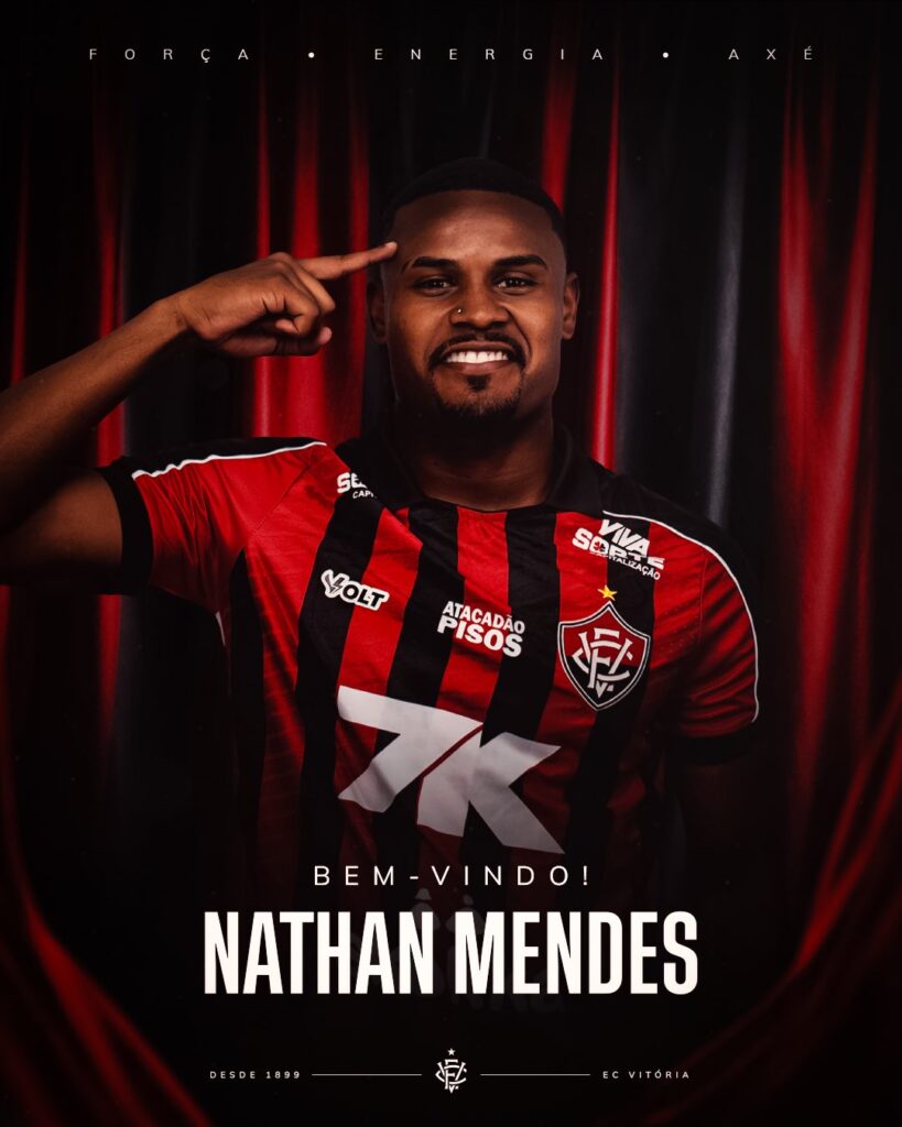 Agora no Vitória, Nathan Mendes busca espaço, sequência de jogos e a consolidação no futebol brasileiro, apostando na força do clube e no apoio da torcida rubro-negra para viver um novo capítulo da carreira.